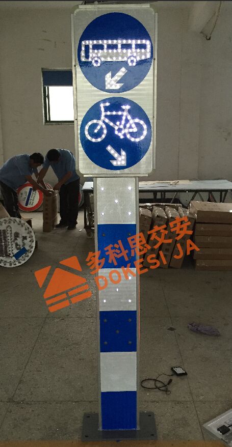 (3)LED外置點(diǎn)陣發(fā)光。公交車道、非機(jī)動(dòng)車道指示標(biāo)志,參考尺寸:450mm(寬)*150mm(厚)+1850mm(高),尺寸可定制。